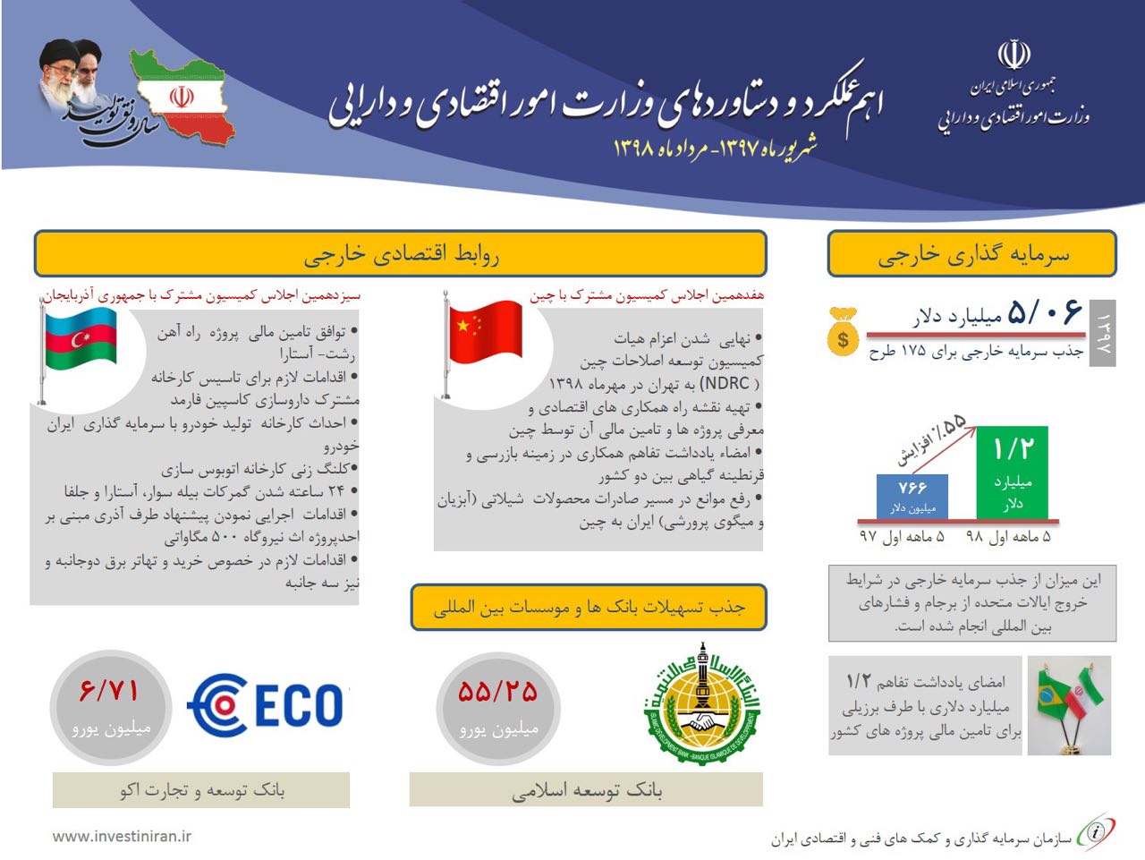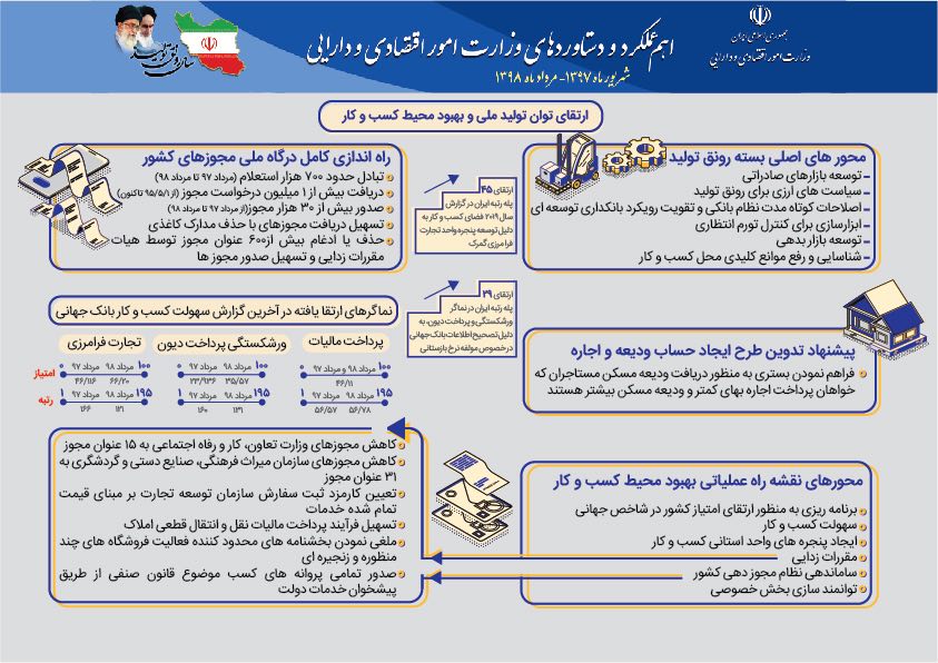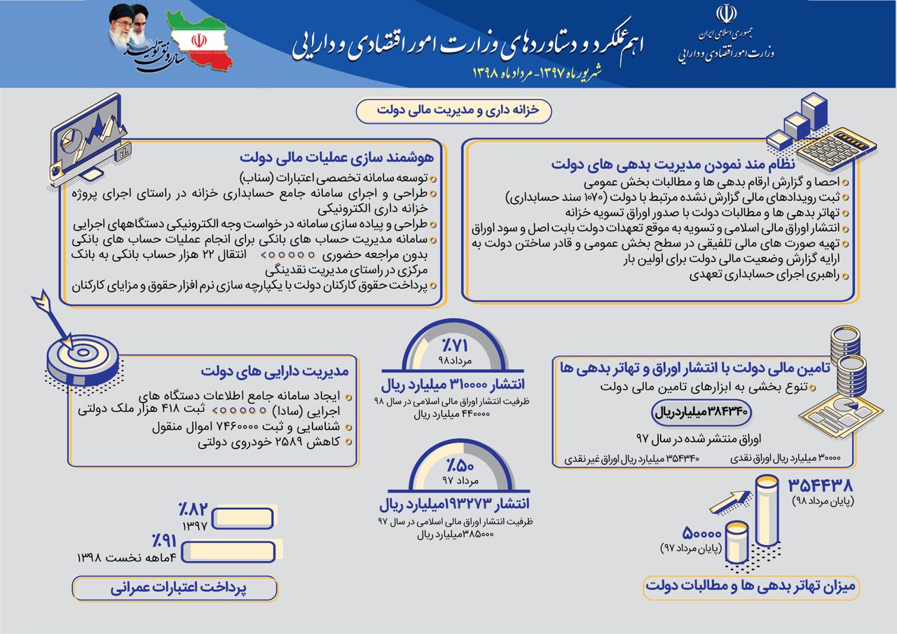 اهم عملکرد و دستآوردهای وزارت اموراقتصادی و دارایی (شهریور۹۷لغایت مرداد۹۸)