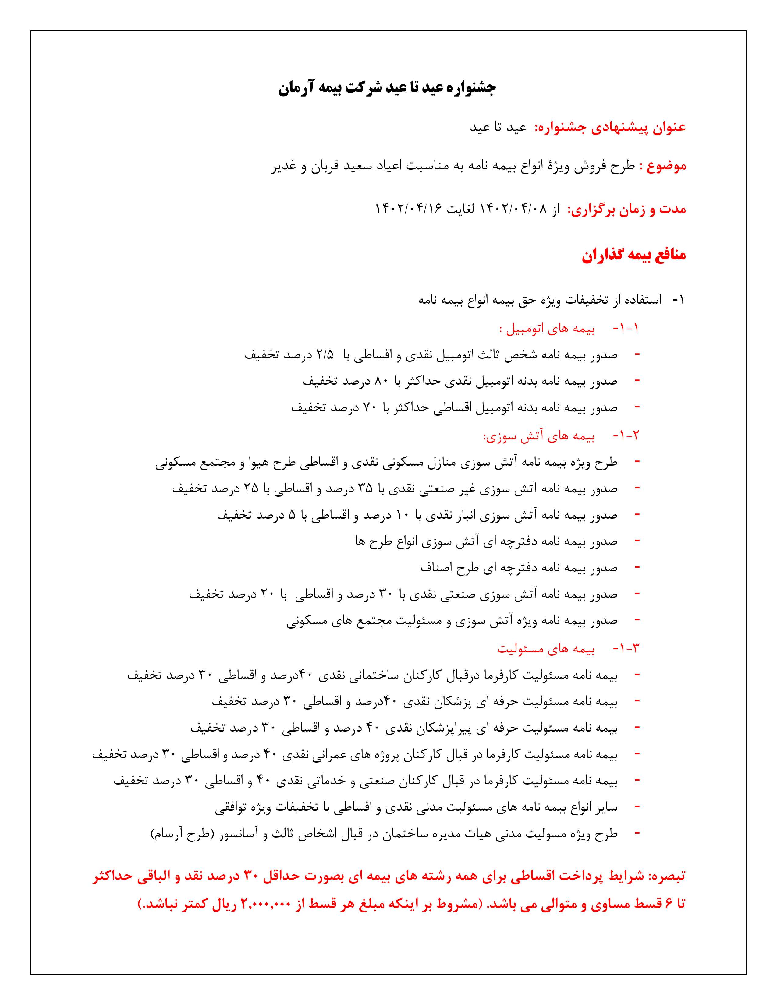 طرح فروش ویژه انواع بیمه نامه به مناسبت اعیاد سعید قربان و غدیر