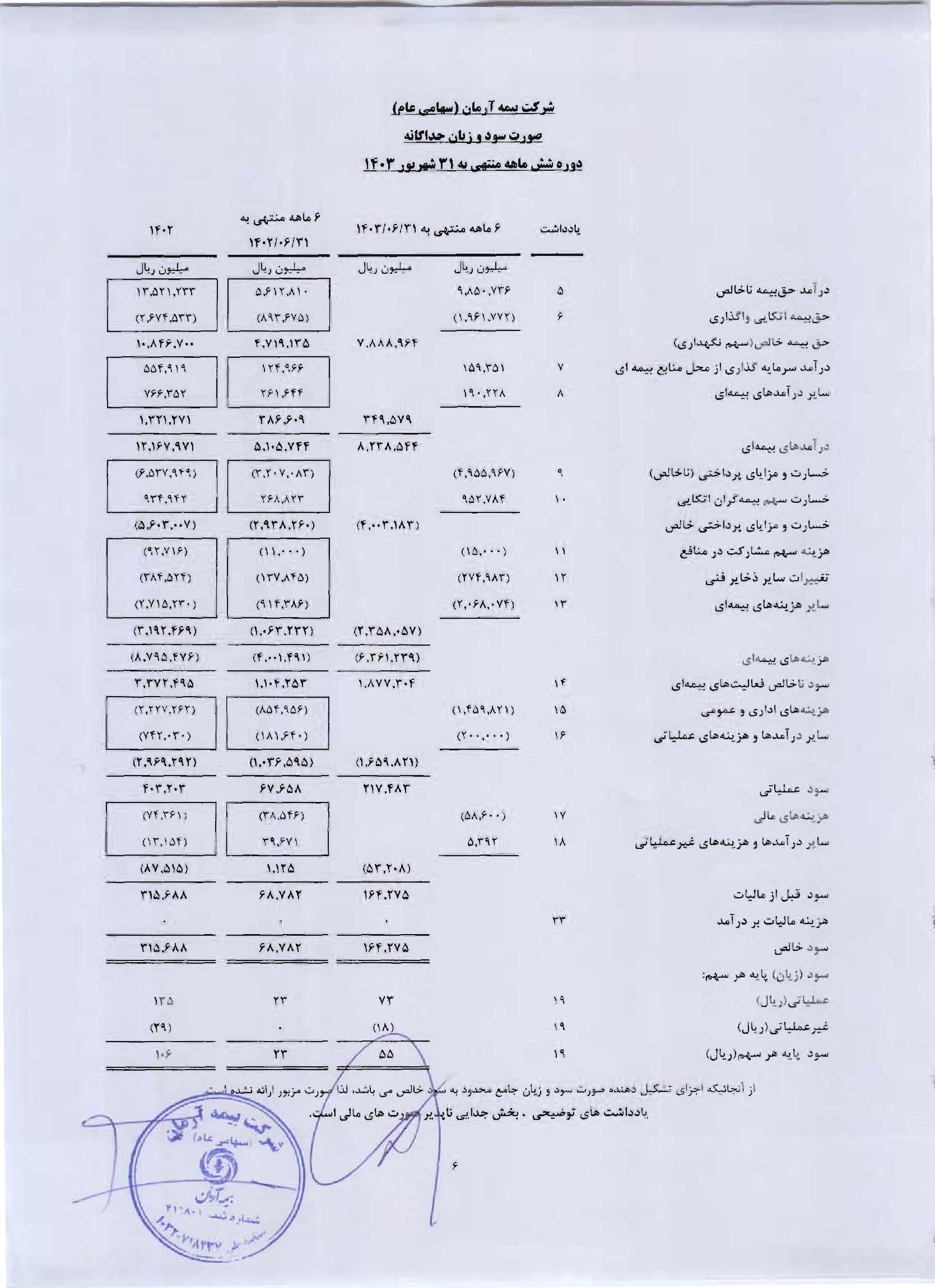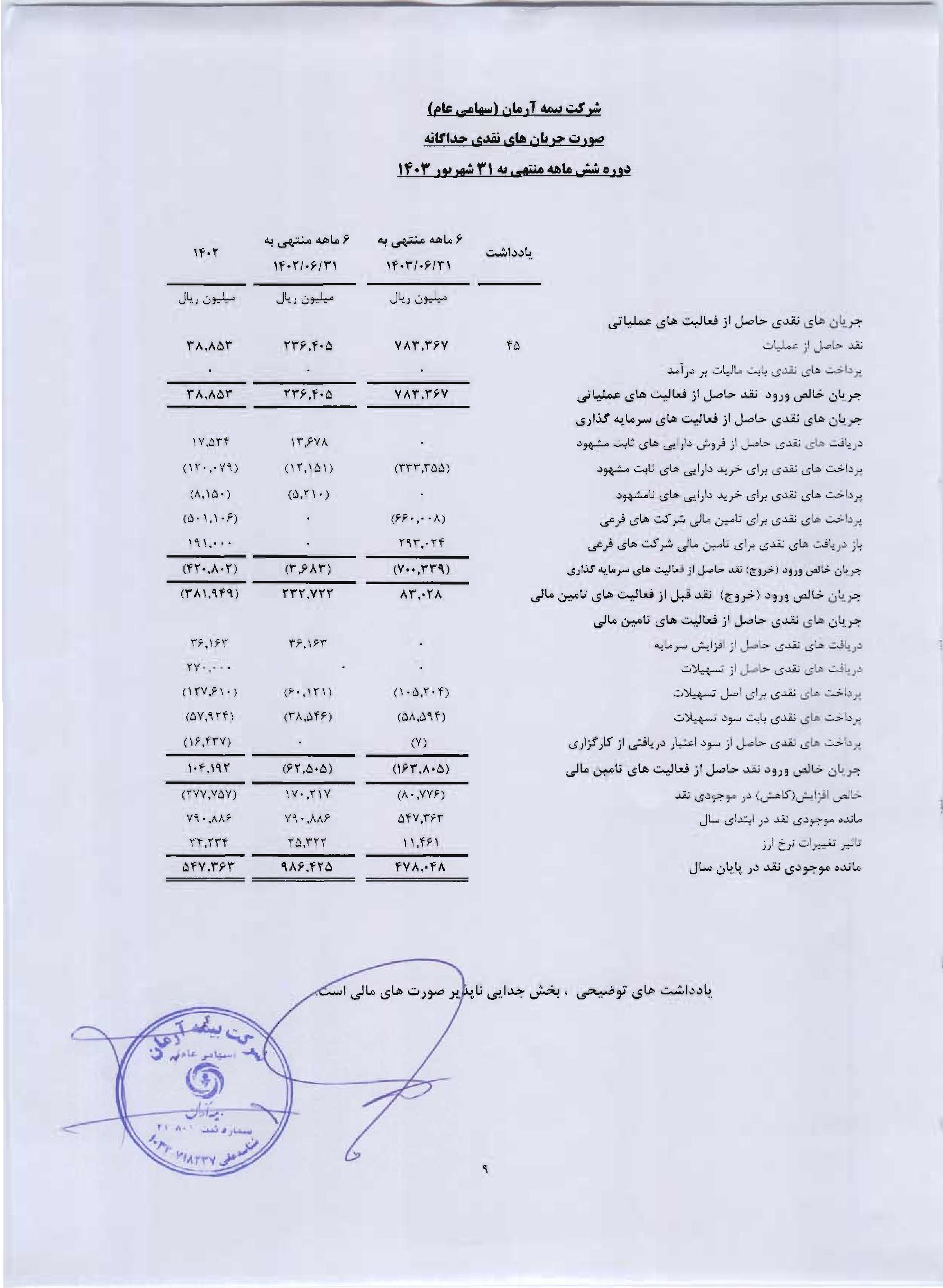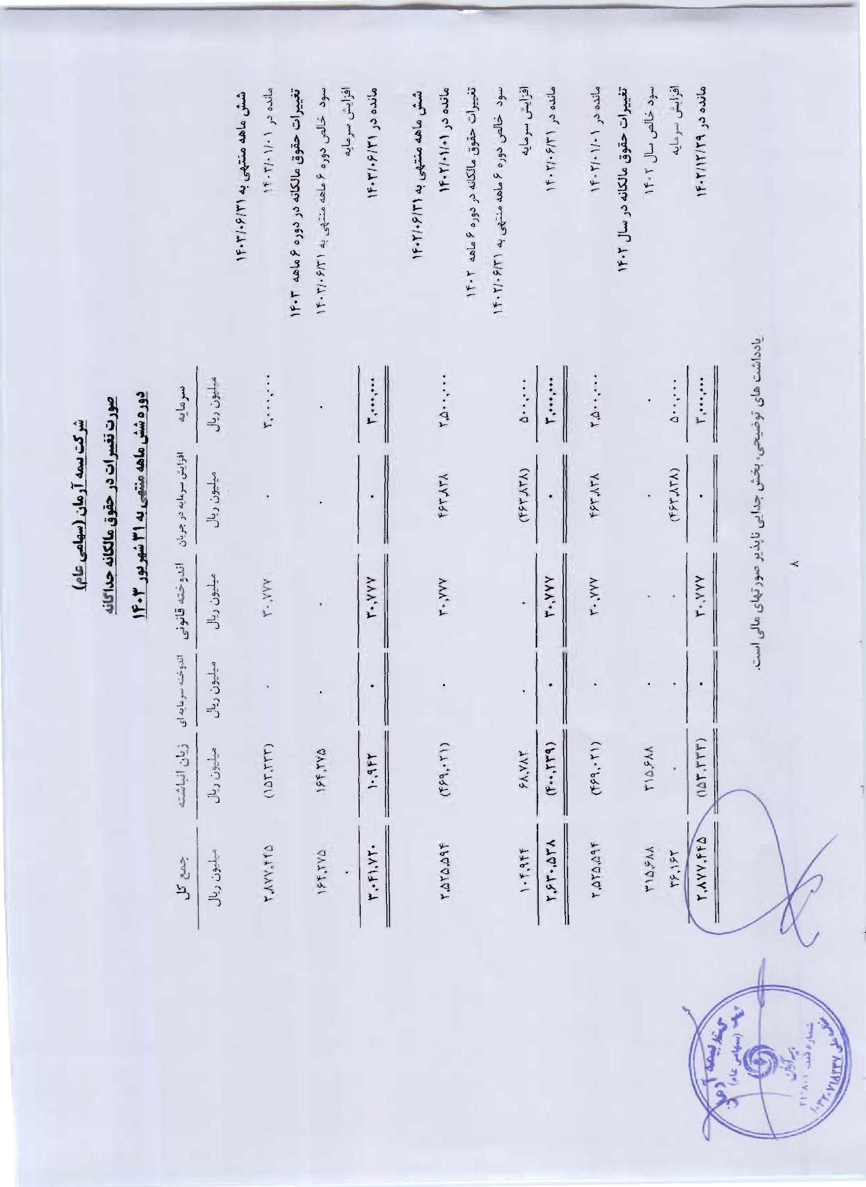 گزارش صورت های مالی منتهی به شهریور - 1403