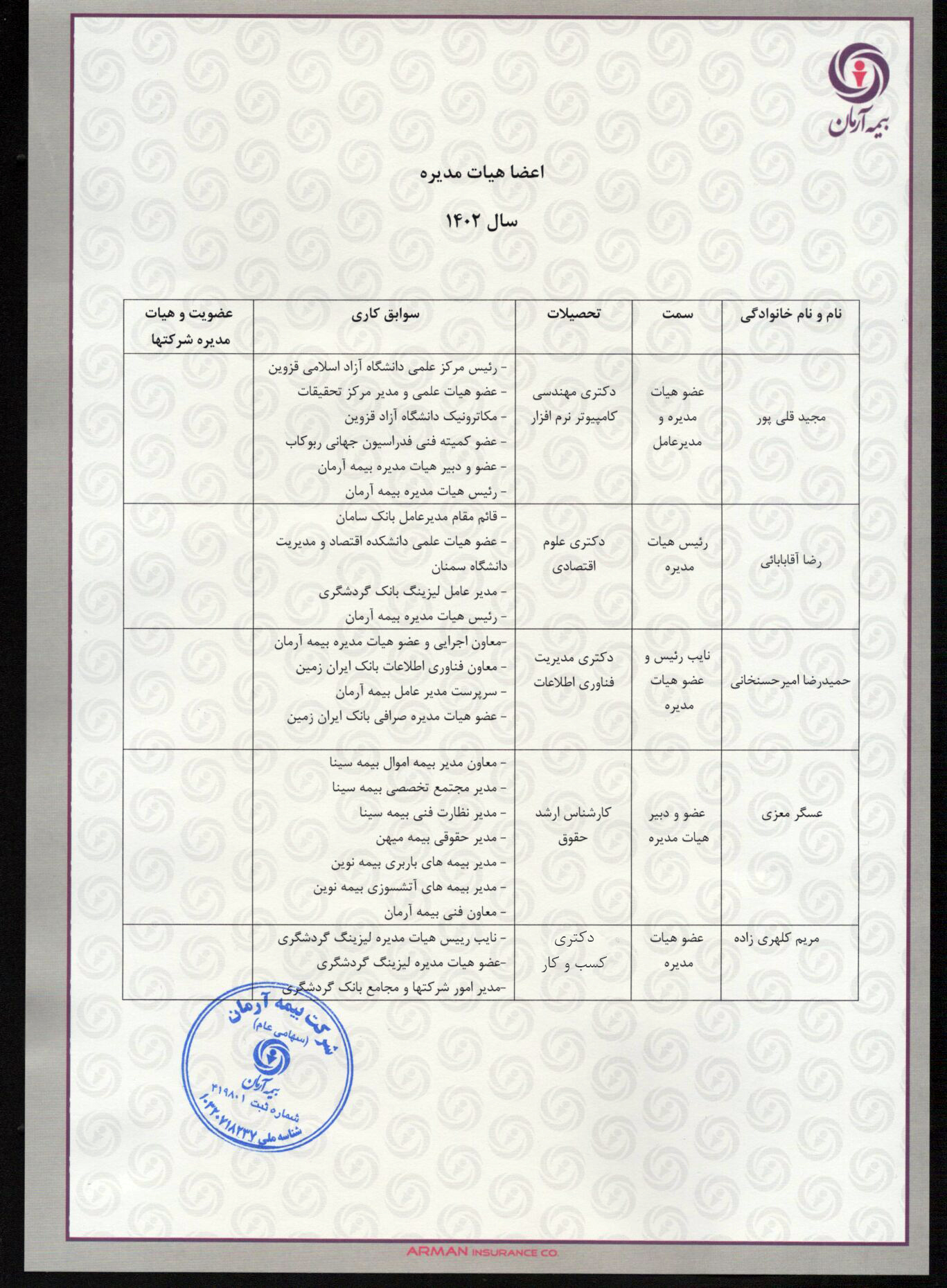 مدیران فنی بیمه آرمان
