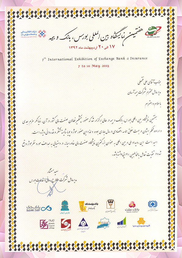 لوح تقدیر شرکت اطلاع رسانی و خدمات بورس