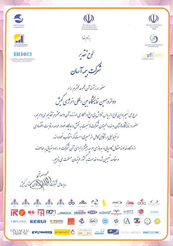 لوح تقدیر شرکت مشاوران نمایشگاهی سپنتاس کیش